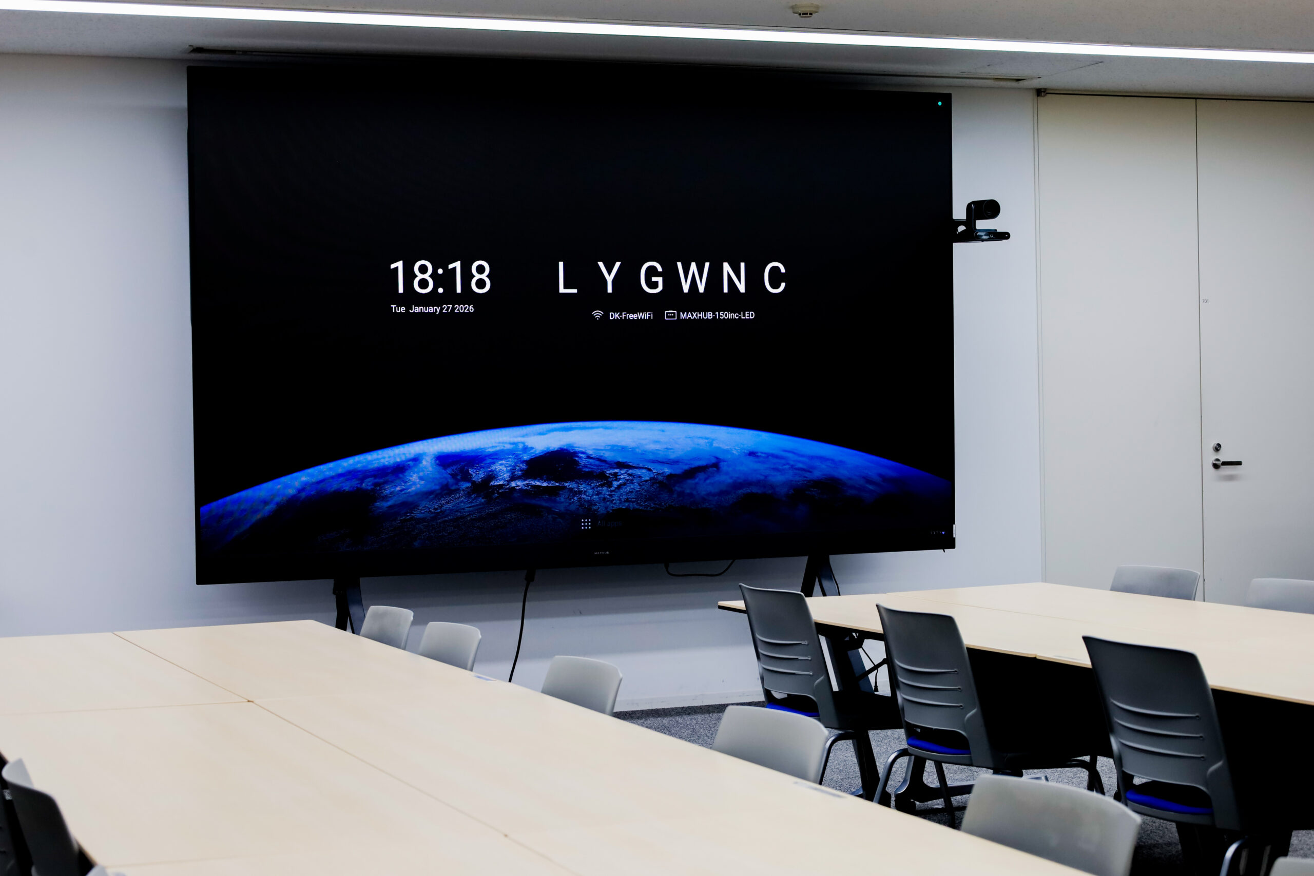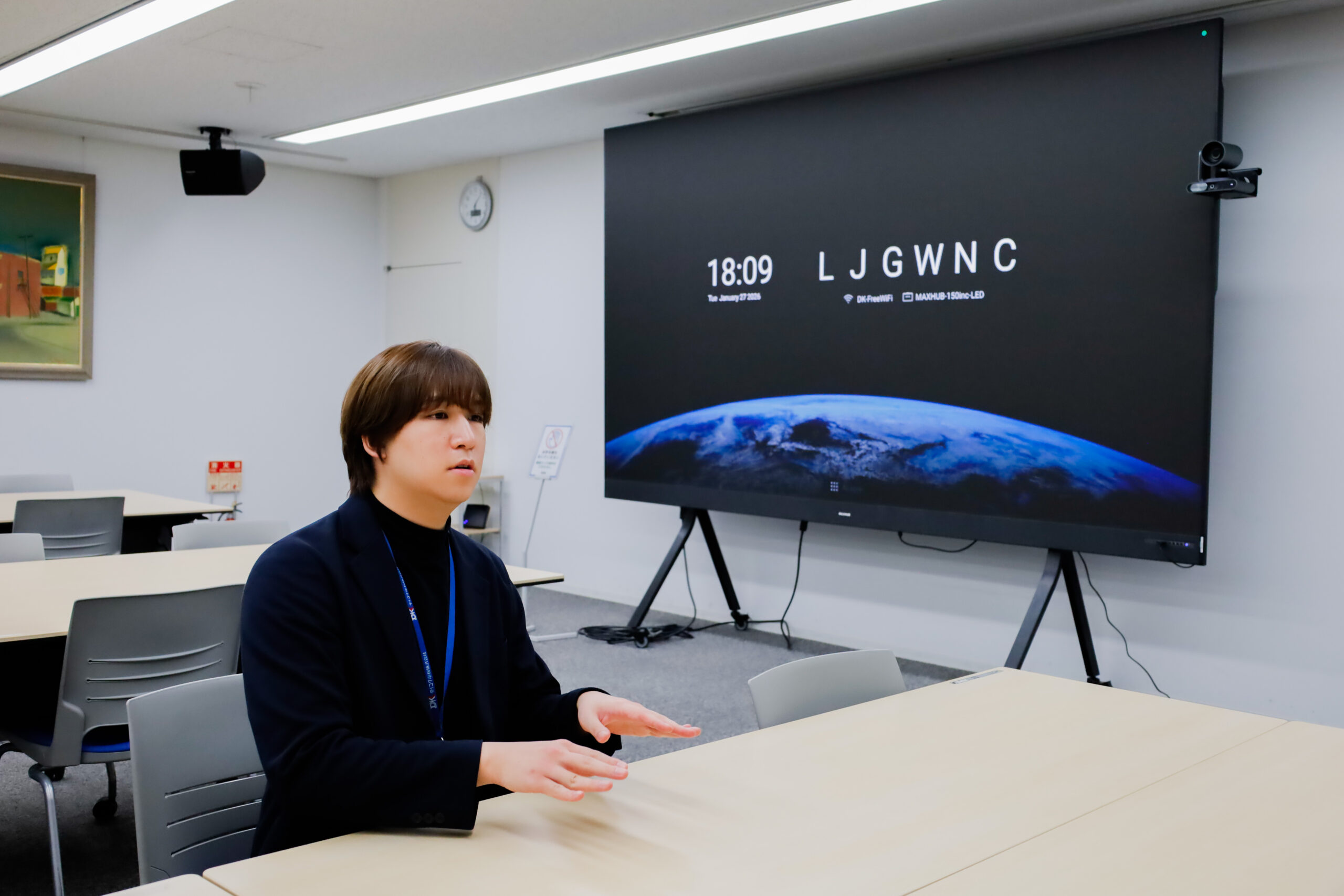 経年劣化と会議室利用ニーズの変化により 使いづらくなった投影機器のストレスを 解消するべくMAXHUB「All in One LED V3シリーズ」を導入。 ワイヤレス投影により会議準備が即完了し、研修や会議の 満足度が向上しました。さらにお客様と同じ目線で音と映像を 確認できる環境が整えられ、顧客体験価値の向上に役立っています。