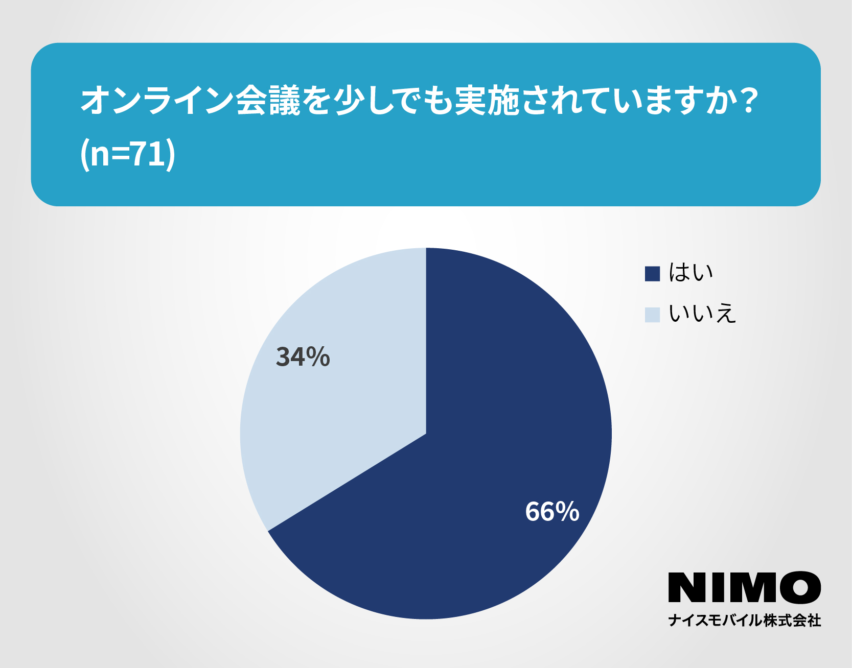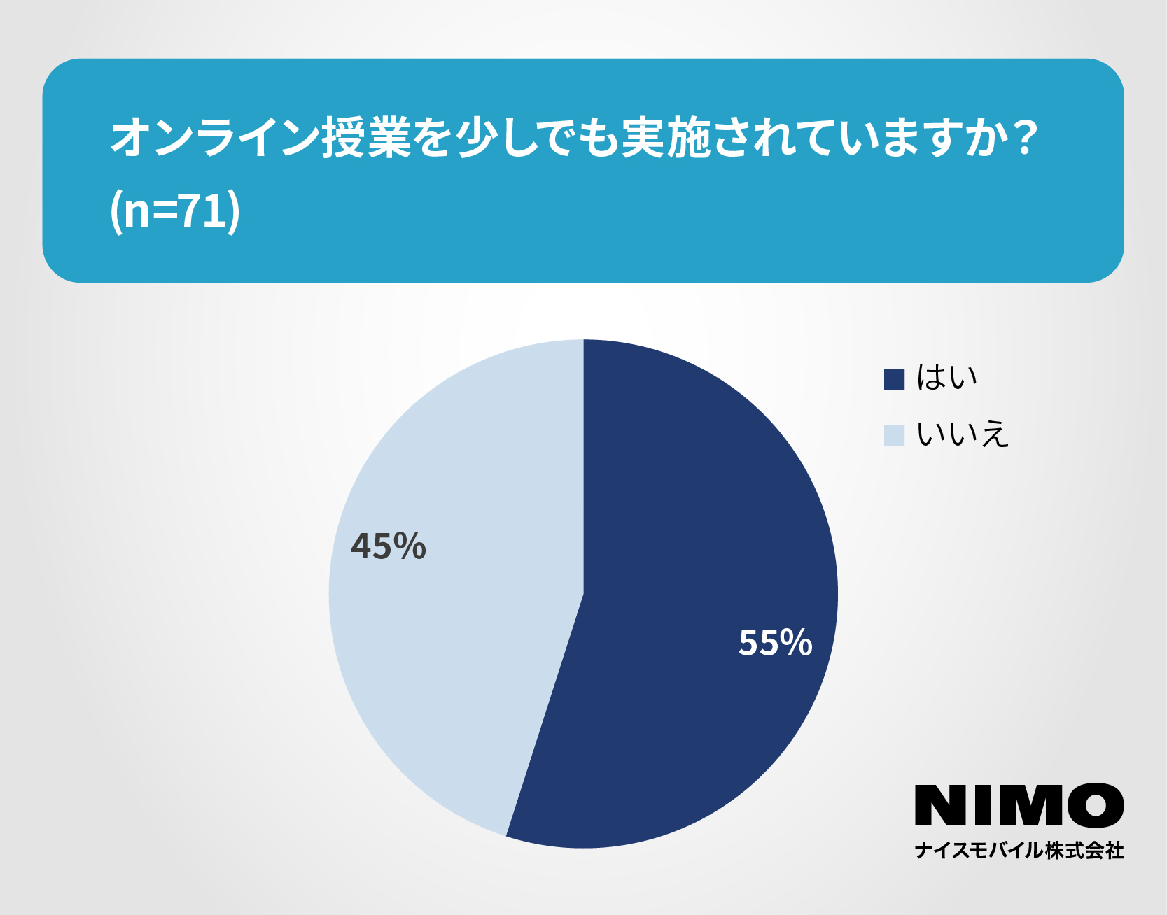 回答のあった71教育機関のうち約66%がオンライン会議を実施。回答のあった71教育機関のうち約55%がオンライン授業の実施。