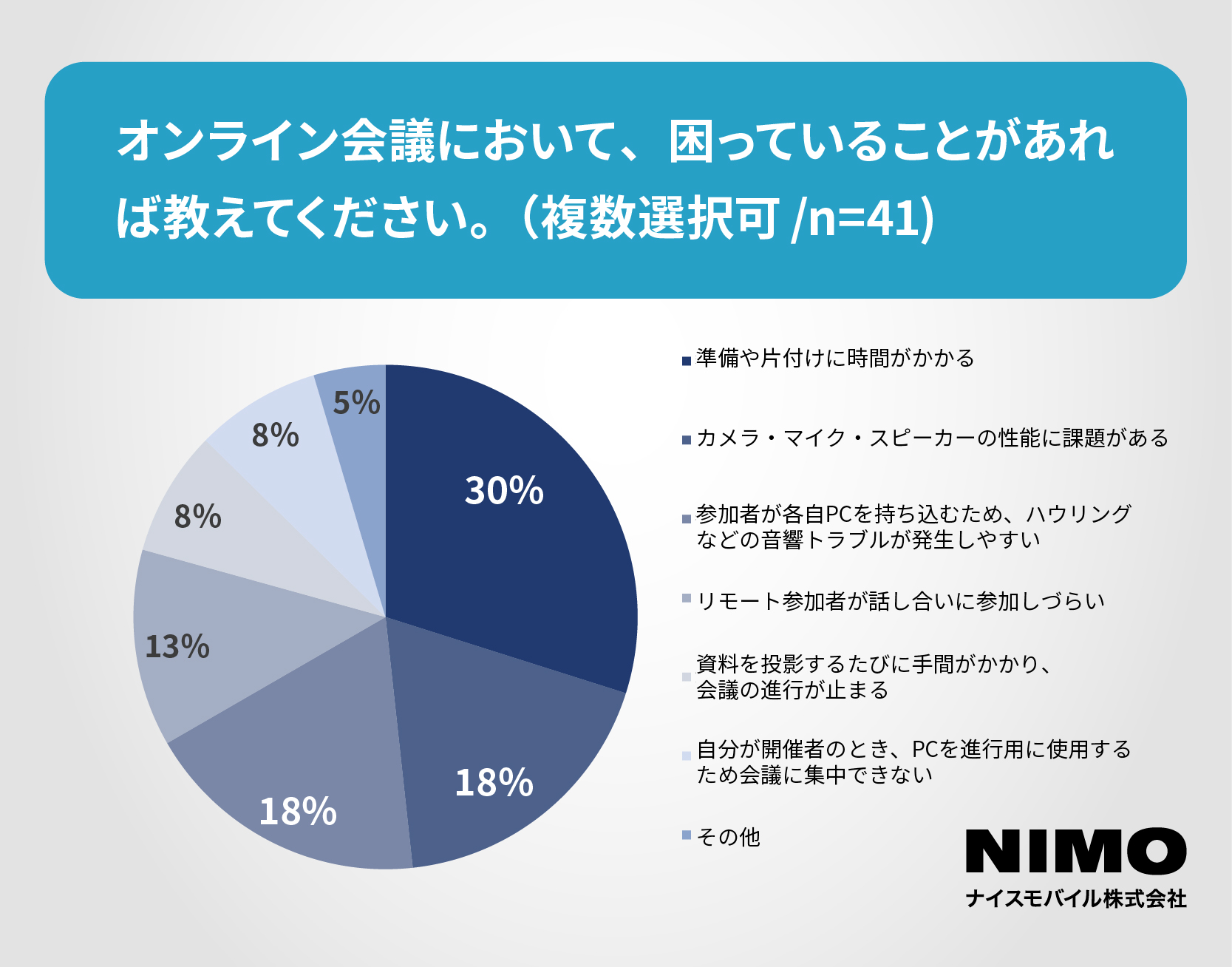 具体的な課題に対する設問では、オンライン会議・授業を問わず「準備や片付けに時間がかかる」という運用上の手間や、