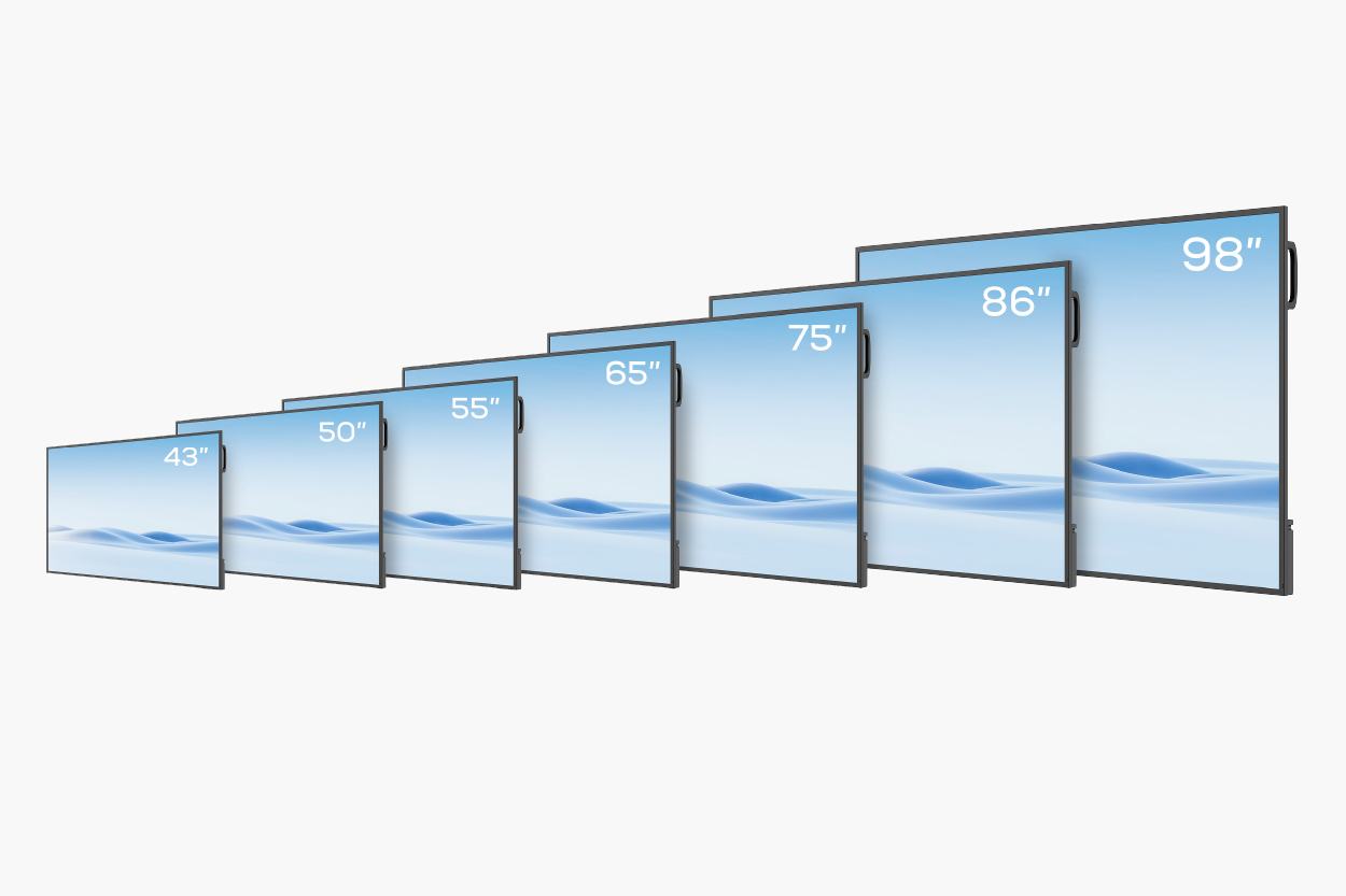 ラインナップには新たに50型が加わり、43〜98型までの全7サイズを取り揃えております。