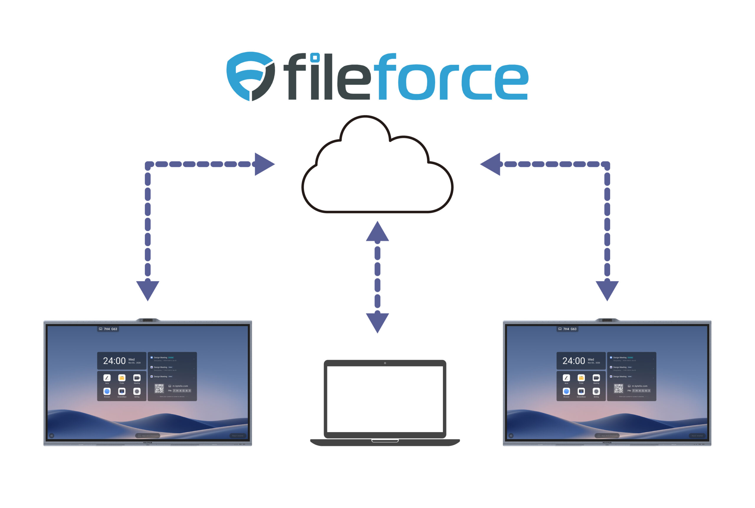 Fileforceは、MAXHUB「All in One Meeting Board V7シリーズ」(以下、ミーティングボードという)と